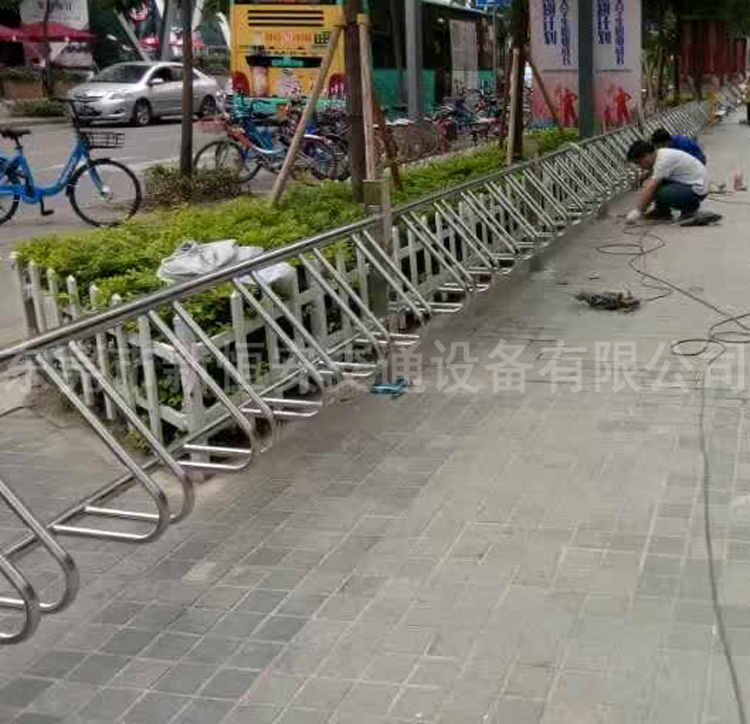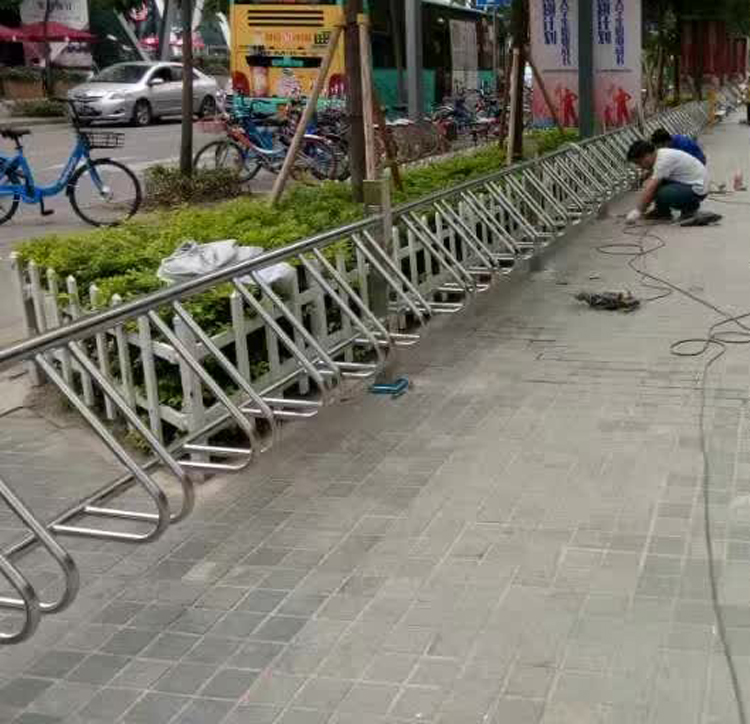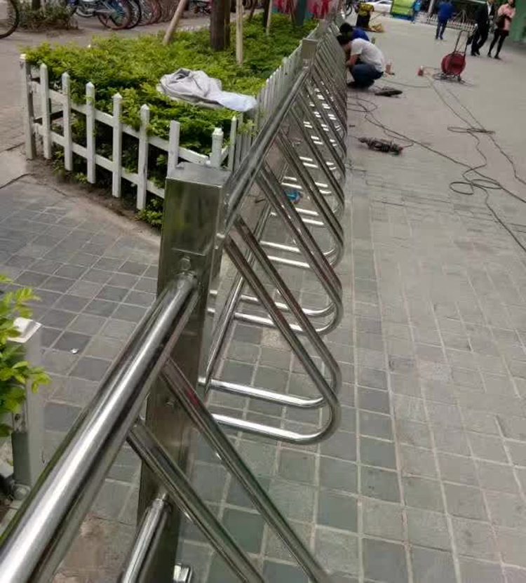 304不銹鋼立式自行車(chē)停車(chē)架安裝實(shí)物: