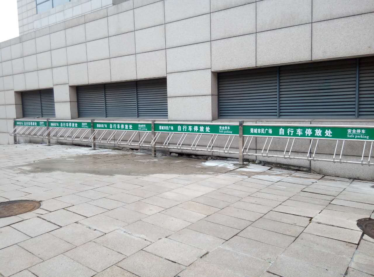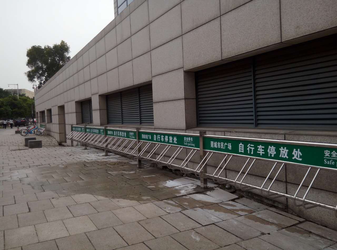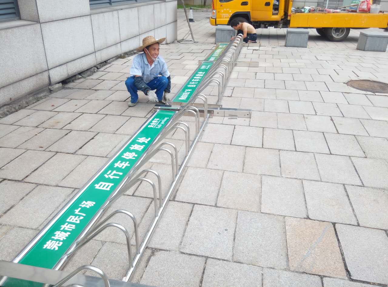 - 莞城市民廣場安裝304不銹鋼立式自行車停車架7月31完工