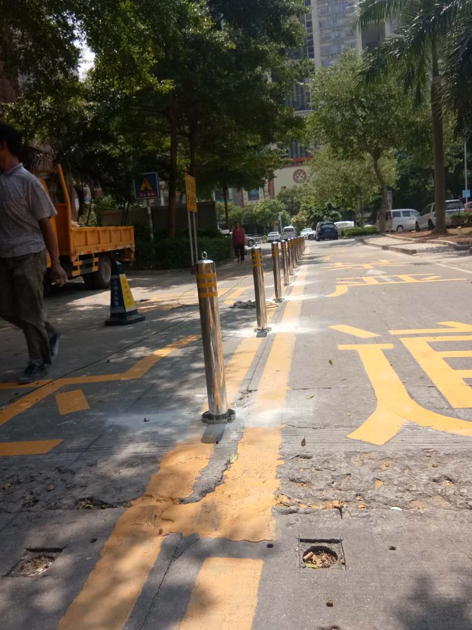- 不銹鋼反光防撞柱安裝完成