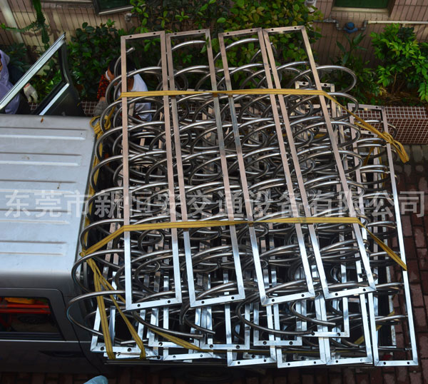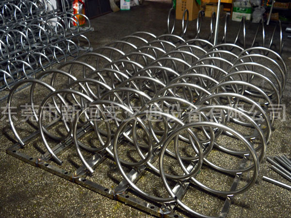 - 東莞蛤地不銹鋼自行車停放架螺旋式定做款安裝在地鐵口處