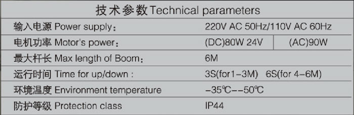 防砸停車(chē)場(chǎng)道閘技術(shù)參數(shù):