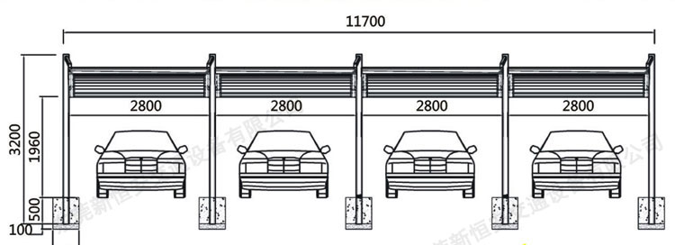2.名稱:鋁合金車棚優(yōu)卓系列雙立柱單車位聯(lián)排101