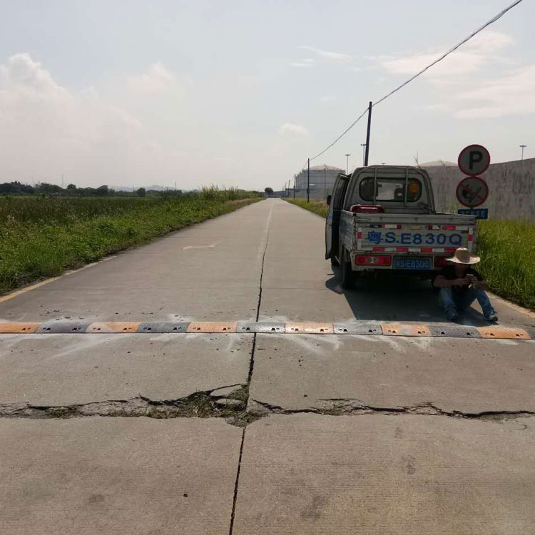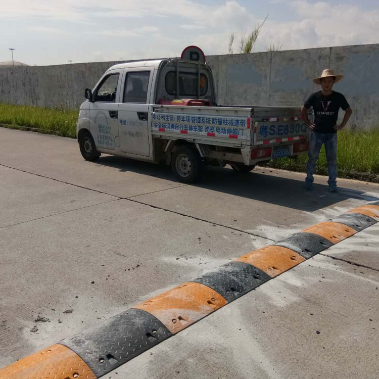 優(yōu)質(zhì)大圓弧橡膠減速帶安裝效果圖展示:
